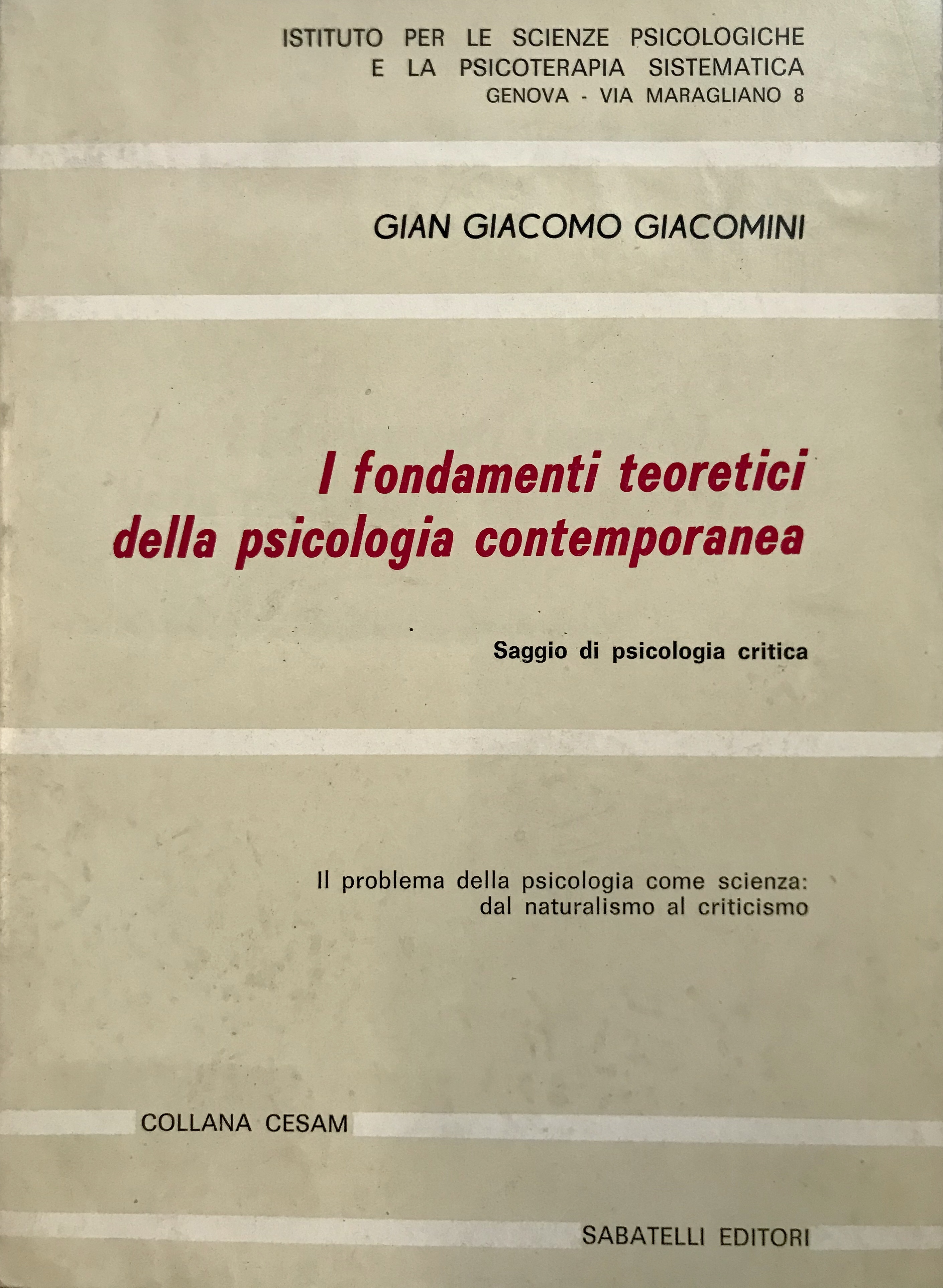 Gian Giacomo Giacomini, medico neuropsichiatra e psicoterapeuta, è Direttore scientifico e didattico dell’Istituto CESAD per le Scienze Psicologiche e la Psicoterapia Sistematica – Centro Studi per l’Analisi Dialettica, fondato a Genova nell’anno 1966 (www.istpsico.it). E’ Direttore della Rassegna “Psicoterapia Professionale”, Organo ufficiale dello stesso Istituto CESAD, iscritta all’International Council of Editors of Psychoanalytic Journals (ICEPJ)… Continua a leggere